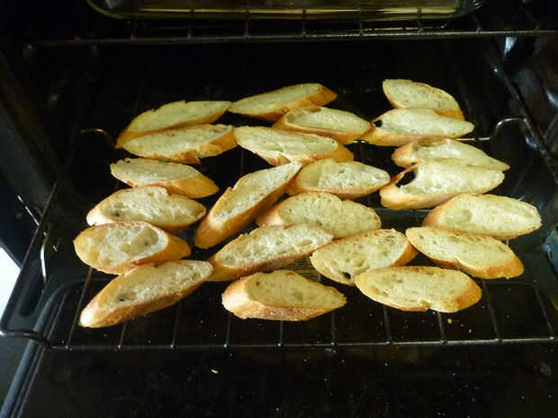 Una bruschetta apropiado utilizar real brasas para tostar el pan, pero es perfectamente comprensible si no tiene acceso a un momentos de fuego ardiente lento antes de servir la cena. Tostar el pan en una tostadora o en el asador si tienes un lote grande.