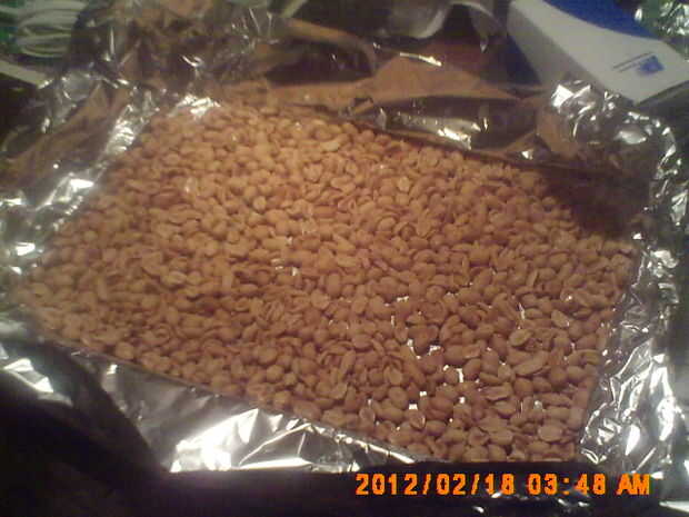 Nota: El gran marrón de Alton había sugerido que usando un Wok para calentar el maní da un mejor asado y solamente toma menos de diez minutos.