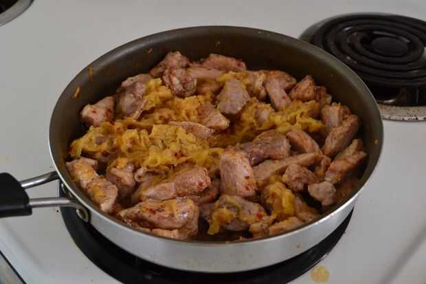 Cuando la carne se vuelve un poco marrón, agregar puré de manzana.
