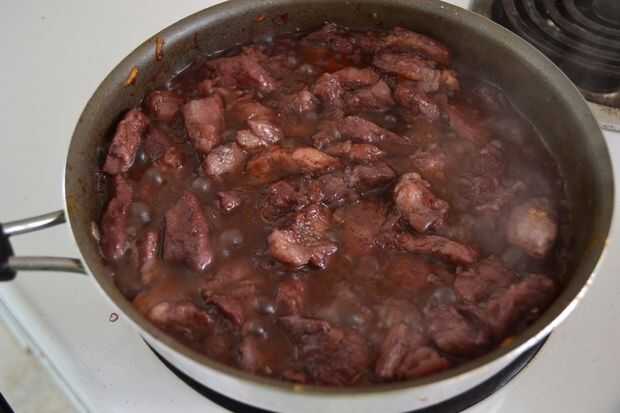 Después de la mitad del vino se evapora, añadir el zumo de naranja recién exprimido.