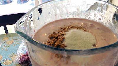 Finalmente, el último 2 cucharadas de triturado de galletasy 1 pkt de Concordia alimentos Smoothie de fresa. Totalmente [ mezcla ] y apartar.