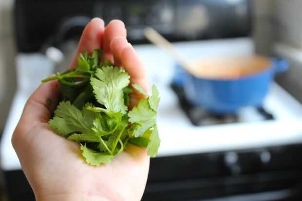 Gire el calor y agregar sobre un puñado de cilantro picado y revolver en. Probar y ver que si desea agregar más - me va fácil en él puesto que el niño no un ventilador grande. Sólo agrego una tonelada más a mi placa. : D