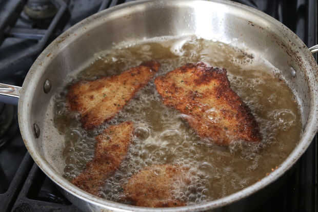 Freír el pollo a un lado hasta que se doren y luego Dale la vuelta y freír el otro lado.