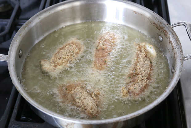 Llene una sartén aproximadamente 1/2" con aceite y calentar en un medio a llama alta.