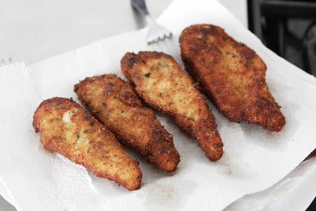 Coloque las chuletas de pollo sobre papel de cocina para absorber el aceite extra antes de comer.
