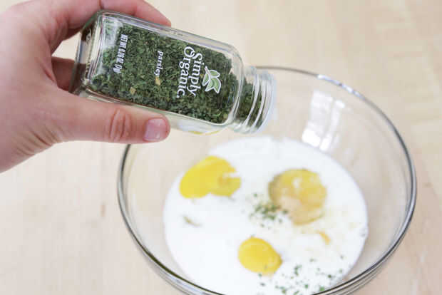 Vierta una cantidad generosa de perejil en el tazón de fuente.