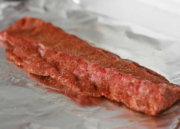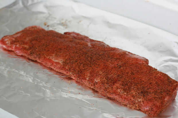 Frotar ambos lados de las costillas con el frote seco. También puede sustituir la simple sal y pimienta si prefiere!