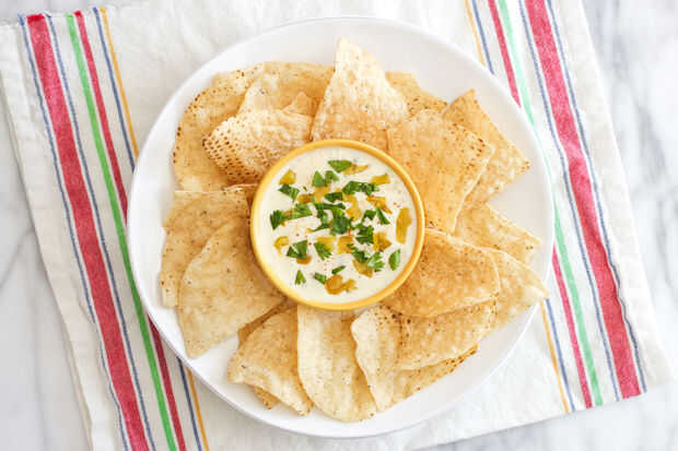 Esta versión de dip de queso blanco tiene chiles verdes, jalapeños, un poco de comino y cualquier especia te quiero - usé pimientos chipotle como de costumbre!