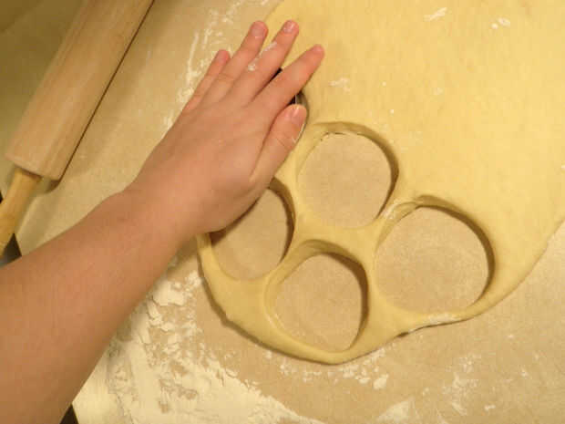 Mantener re-balling y extender la masa hasta que no puede cortar cualquier donas más.