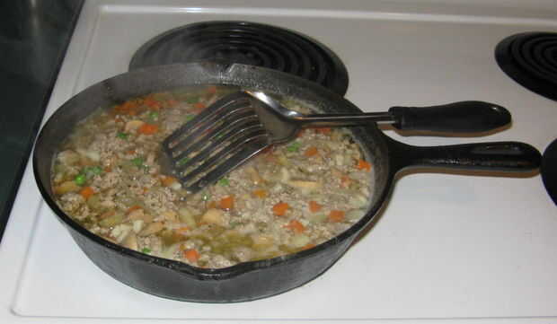 Uno de los trucos que utilizo para cocinar carne molida cruda es cacería en vez de freírlas, cuando se fríe la carne molida que puede salir en grupos grandes y grasos. Pero si cocer carne molida puede revolver la carne en el agua por lo que cuando se cocinan sale en pedacitos pequeños, que se pueden mezclar en salsas más a fondo. También puede separar el exceso de grasa vertiendo el agua y fuera a través de un colador.