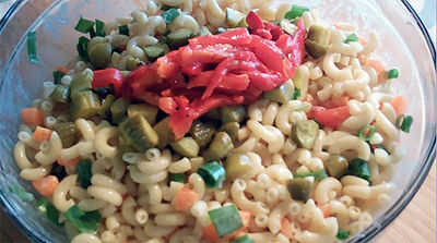 muy sabrosa y fácil de hacer ensalada de macarrones para hacer una barbacoa u otra reunión. Lo siento por la falta de fotos finales, la ensalada fue tomada por mi hijo en ley como he terminado así que él podría almacenar en su frigorífico extraPaso 1
