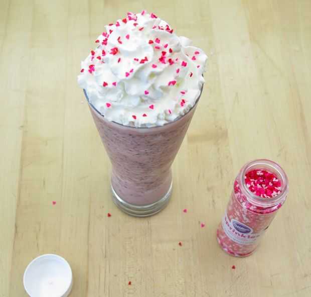 Superior con su elección de decoraciones. Fui con apenas batida y Wilton corazón rociado esta vez, pero tanto chocolate y frambuesa (o fresa) salsa estaría bien.