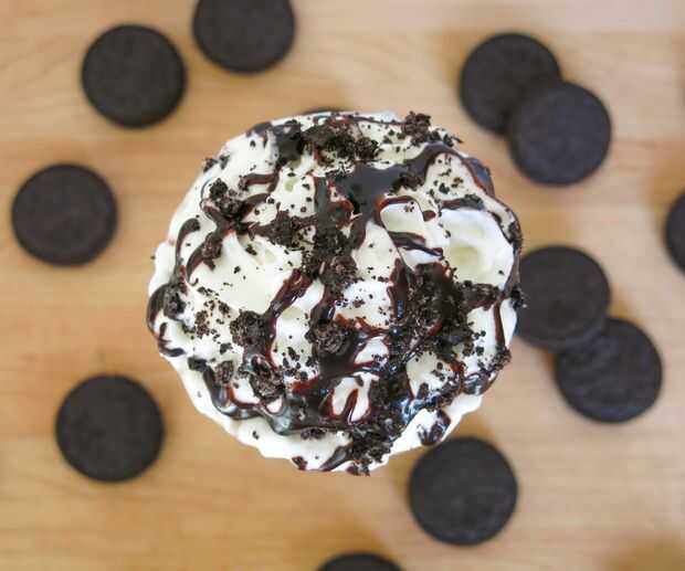 Se trata de un cruce entre un Frappuccino Mocha y un Frappuccino de viruta de chocolate doble (excepto con galletas y crema).