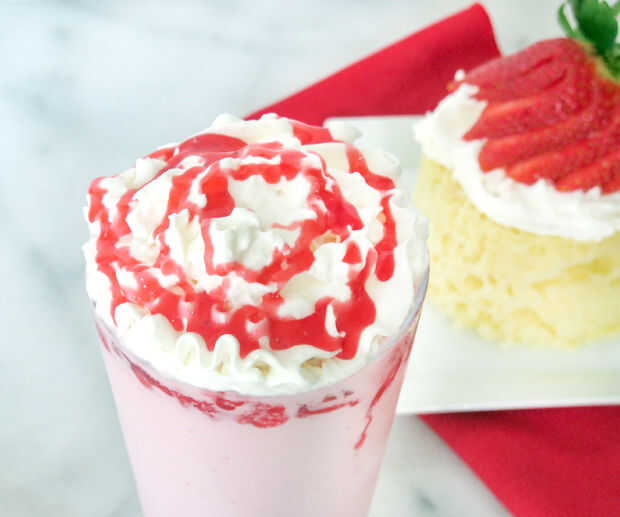Una firma del día de San Valentín fresas cubiertas de chocolate, así que por qué no disfrutar de esta delicia en forma de un frappuccino. StarbucksSecretMenu tiene una receta poco agradable para esta bebida y he hecho pequeñas modificaciones para que