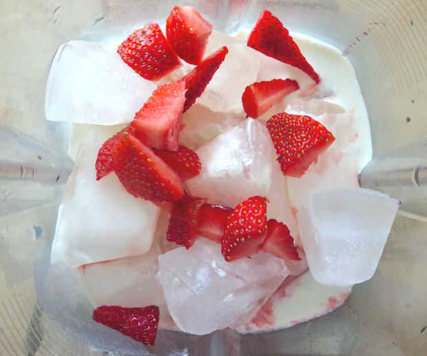 Para decorar, puedes hacer lo que desea. Decidí poner mi mezcla de frappuccino en mi copa, cubra con fresas maceradas o trocear fresas frescas con salsa de fresa obras demasiado, batida topping, y entonces cubierto de salsa de fresa. Tal vez fue por la borda, pero pensé que era bonito :)