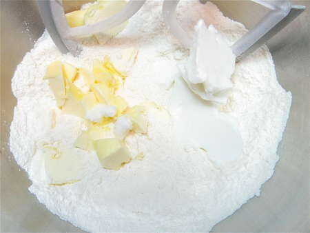 1. mezclar la levadura, una pizca de azúcar y agua y reservar mientras se prepara los otros ingredientes. Tamice la harina restante, azúcar, bicarbonato de sodio, polvo de hornear y sal en un tazón grande. Cortar la mantequilla en la harina hasta que quede una textura desmenuzable áspera. Revuelva la mezcla de levadura con la mantequilla y agregar a la harina. Mezclar hasta que una masa pegajosa, envolver y enfriar durante la noche.