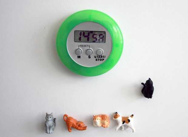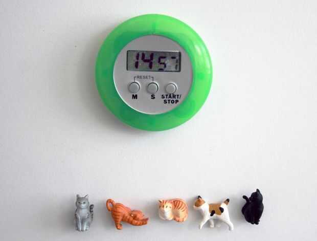La manera de llevar la pista del tiempo es establecer una alarma para 15 minutos y mantener una ficha de corriente de cuantas veces he restablecerla.  Uso imanes de gatito para mantener la cuenta de cuántos conjuntos de 15 que he hecho.  Usted podría deducir de la cantidad de imanes que hecho al horno este granola durante 1 hora y 15 minutos, y sería correcto.  Sin embargo, mi siguiente lote se cocinar sólo una hora.