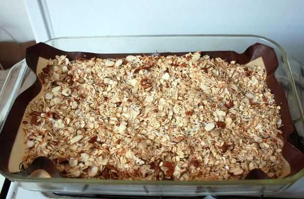 Una vez que el horno ha alcanzado 250F (120C), hornee la granola durante 1 hora, revolviendo cada 15 minutos.