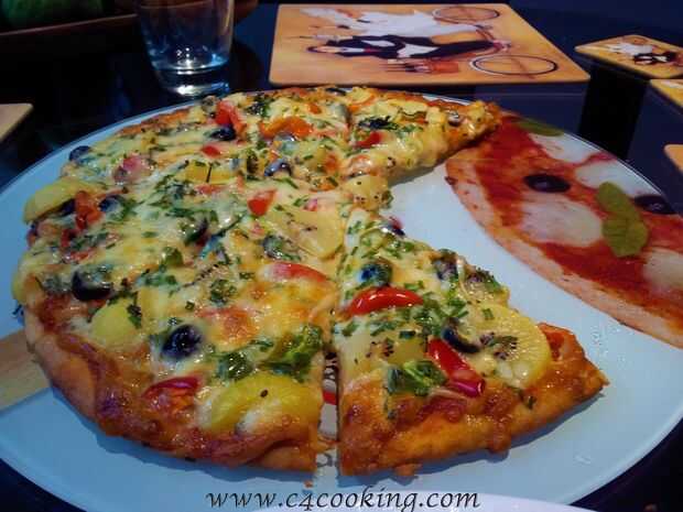 Ding ding... Pizza READY... Sáquelos del horno y lugar sobre una estera. Lentamente suelte los lados de la pizza con una espátula plana y llevar a una placa de servidor de pizza.