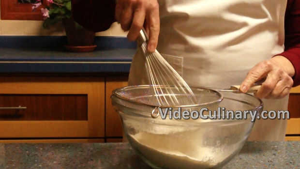 Cierna 250 gramos de harina y 5 gramos (1 cucharadita) de levadura en polvo.