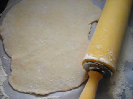 Sobre una mesada enmantecada, utilice un rodillo para rodar la masa en una hoja de hasta aproximadamente 1/4" de espesor. Si tienes un rodillo de pasta, también puede ser utilizado.