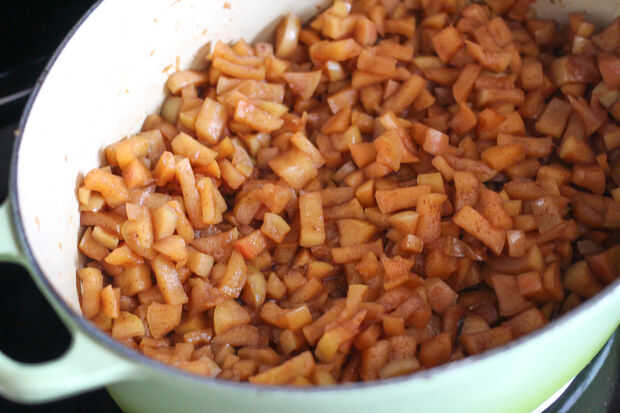 Llegando al final de la hora y media, tienes poco a ningún líquido a la izquierda y las manzanas deben ser agradable y suave. Si encuentra su líquido desapareciendo antes de entonces, agregar en 1/4 taza más y gire a su calor un poco más abajo.