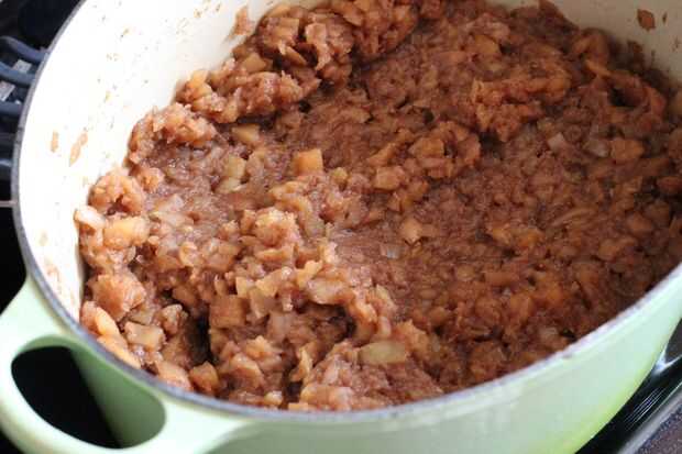 Baje el calor a bajo y cocinar por otros 30 minutos o menos, removiendo cada pocos minutos. En este momento sólo estamos tratando de quitar un poco más líquido y concentran los sabores un poco - las manzanas deben recibir más oscuras como cocinan!