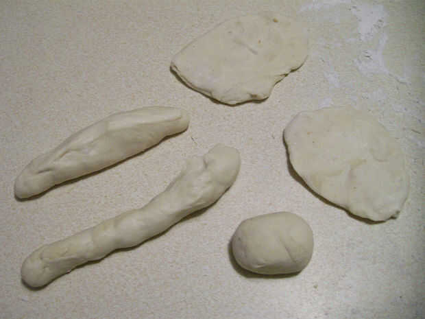 1) corte o rip masa en bola, plano formas o rollos de registro.