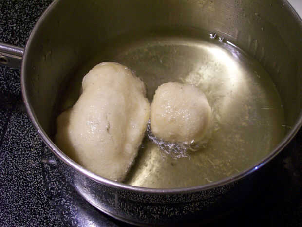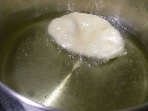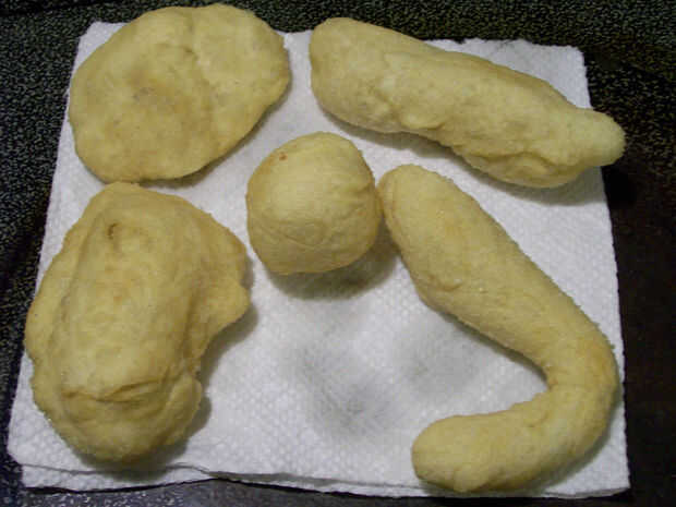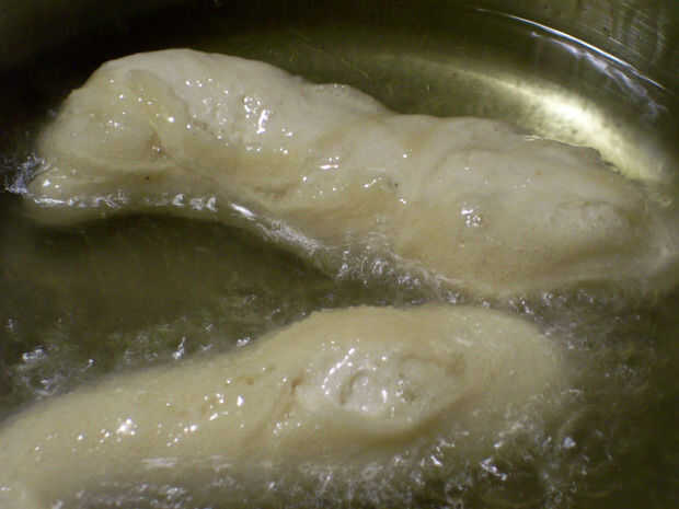 3) formas de lugar en el aceite, se hundirá al principio luego flotarán.