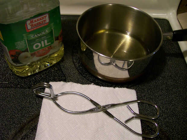 2) caliente el aceite hasta que aparezcan pequeñas olas.