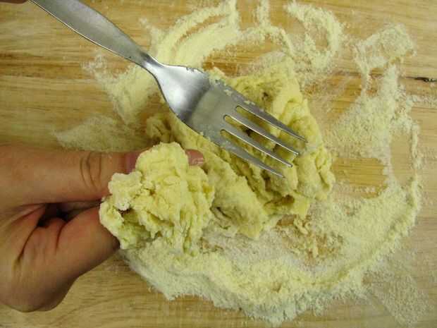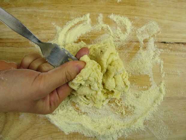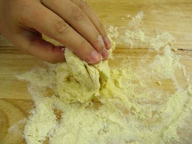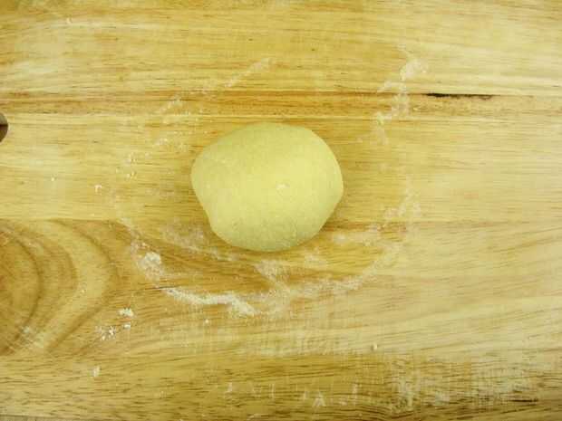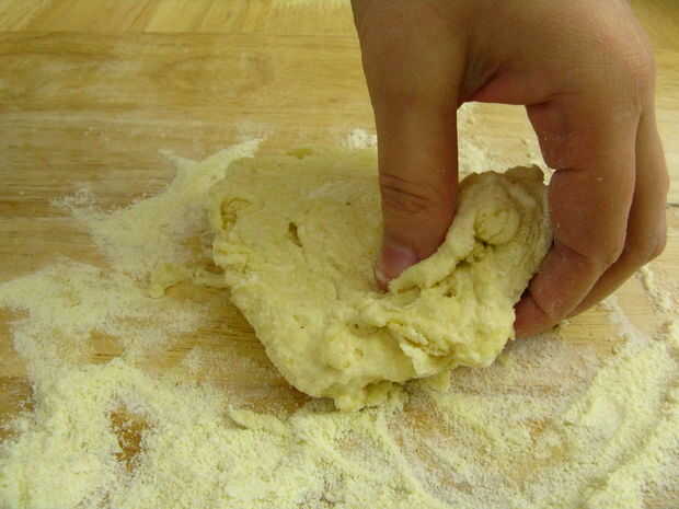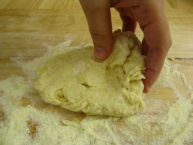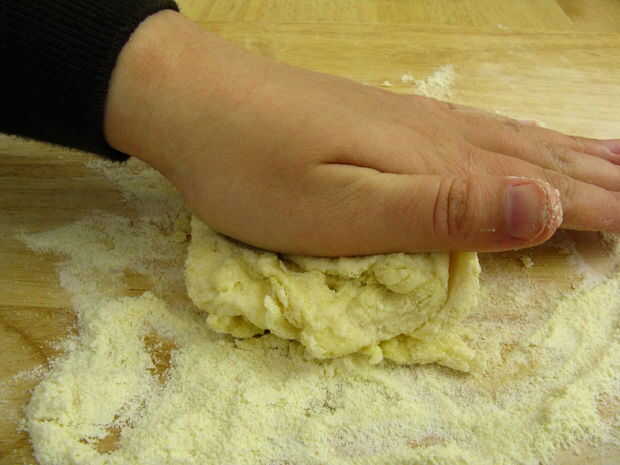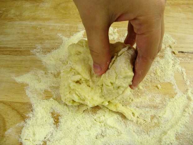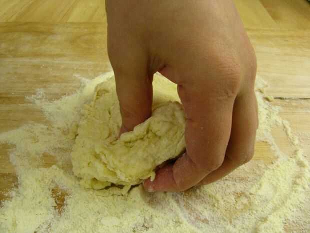 Probablemente habrá algún exceso de harina. Trabajo en la harina hasta que la mayoría (si no todos) de se ha incorporado en la masa.