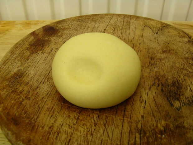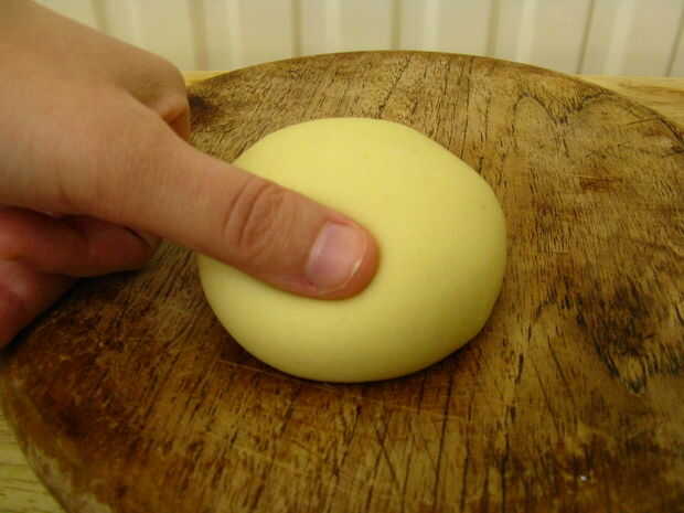 Trabajar la masa durante 10 minutos hasta liso y elástico. Debe recuperarse en la prensa suave de un dedo.