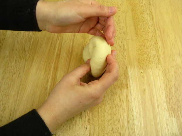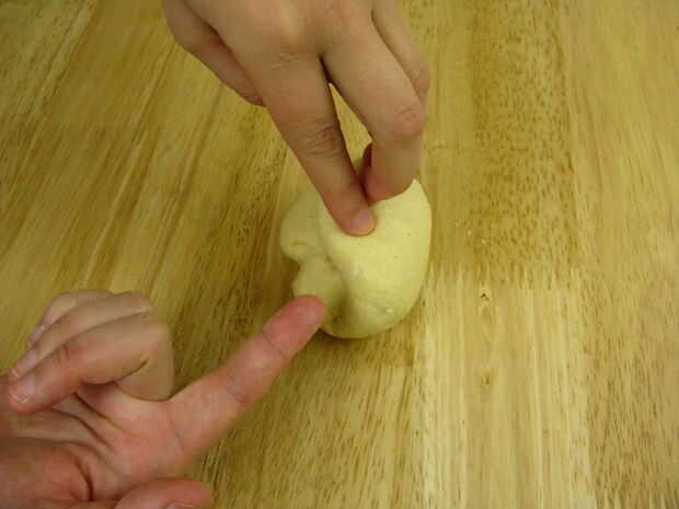 Para evitar esto, sólo tire hacia atrás la masa hacia el centro en lugar de doblar.
