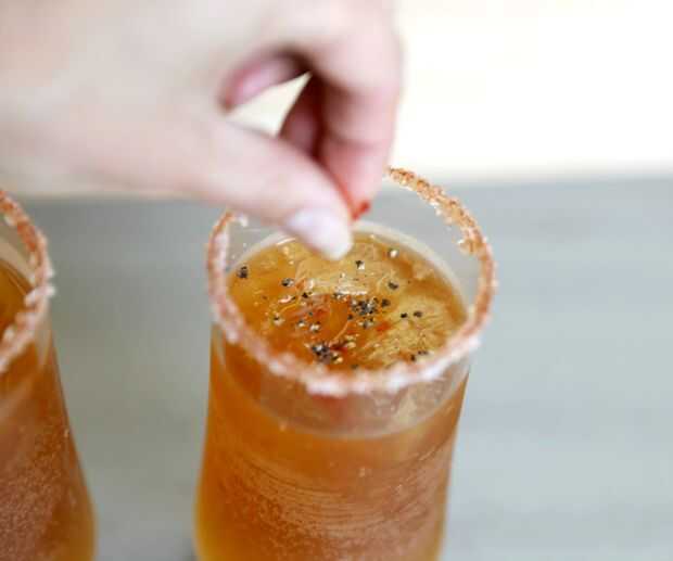 Añadir una ligera pizca de pimienta agrietada y pimentón ahumado en la parte superior de cada bebida.