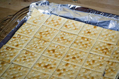 Línea una bandeja con papel de aluminio y colocar las galletas en una sola capa.