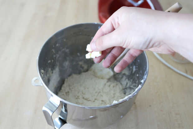 Antes de terminar, cortar la mantequilla en trocitos y se mezcla en la masa.