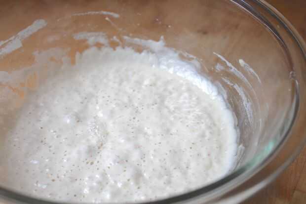 Mezclar estos ingredientes en un bol de tamaño mediano hasta que están agradable y suave y sin grumos secos. Cubra con envoltura de plástico y deja reposar a temperatura ambiente durante 8-24 horas. (Illustrated de Cook también dice que usted puede almacenar en el refrigerador hasta por tres días, siempre y cuando lo dejas regresar a temperatura ambiente antes de usar).