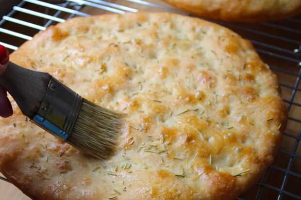 Una vez hecho el pan, sacar del horno y dejar enfriar sobre bastidores en los moldes durante 5 minutos. Luego sacar el pan de los moldes y dejarlos seguir refresqúese en los estantes durante unos 30 minutos. (Si usted tiene cualquier aceite extra en los fondos de las sartenes, cepillo en la parte superior).