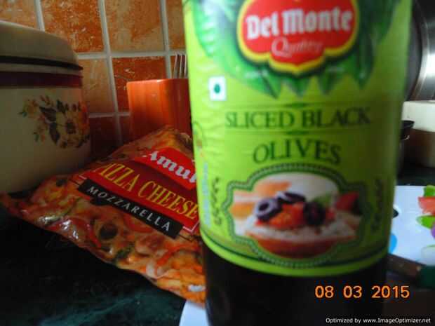 Ahora si quieres alguna decoración sobre su pizza, use algunas aceitunas negras picadas sobre el queso.
