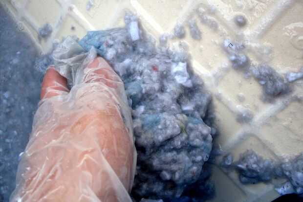 Me pareció rápido y simple utilizar la parte posterior de una baldosa y un poco de tela y frote el papel en trozos pequeños. Fino papel higiénico y periódico son algo endebles una vez mojado por lo que este proceso no tardará. El cuerpo de arcilla es mucho más suave para esculpir si utiliza papeles más finos.
