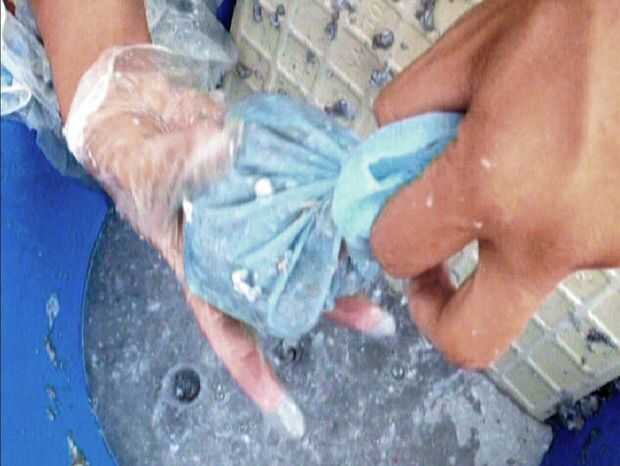 Utilice el paño de muselina fina (cualquier tejido fino va a hacer, encontré una mascarilla quirúrgica fue perfecta) y verter un poco de la pulpa a través de él. Toda el agua se drenará a través dejando intacto el papel fino puré. Gire todo exceso de agua hacia fuera.
