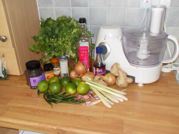 La receta para el curry que utiliza esta pasta se puede encontrar aquí: verde pollo Thai al Curry. También puede ser utilizado para hacer una sopa de pollo y coco media.