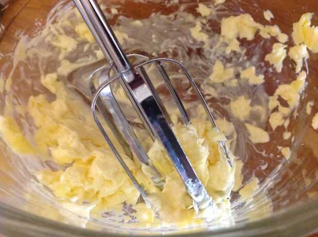 Batir la mantequilla hasta que esté suave y añadir el azúcar restante