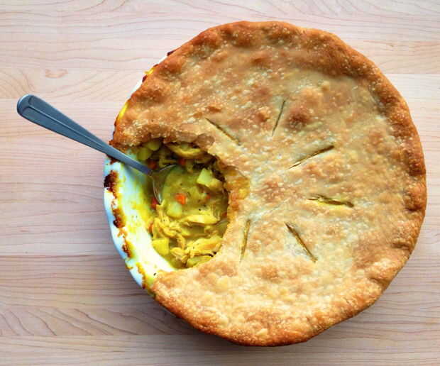 Pollo pastel es un buen uso de sopa de sobras de pollo o un pollo asado. Última vez que lo hizo, he utilizado caldo de pollo restante. Esta vez engañado y compraron un pollo y utiliza la carne de él.