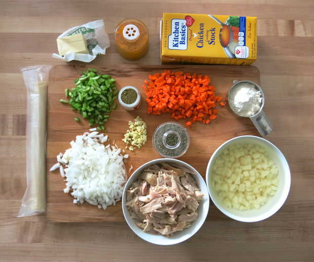 "Una receta de tarta deliciosa de pollo bote hecho desde cero con zanahorias, setas y nabos".Paso 1: ingredientes2 sin piel pollo pechugas con hueso (aproximadamente 1 3/4 libras)4 tazas de caldo de pollo, bajo en sodio enlatado o de casera2 cuc