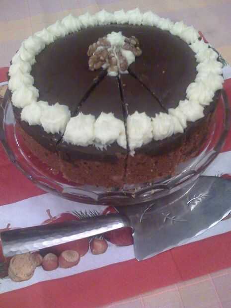 - Vierta con cuidado el chocolate derretido en la parte superior de la torta refrigerada, suavemente la aceleración a los lados para suavizar la superficie. Permiten establecer.