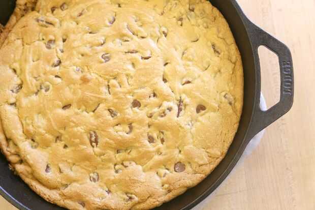 Podría introducir fácilmente su receta de chispas de chocolate favorito en lugar de seguir el mío, pero si acaso buscas una nueva, he incluido aquí. No te olvides de aumentar el tiempo de cocción si sigues tu propia receta aunque! Un típico lote será adecuado para una sartén de 10 pulgadas