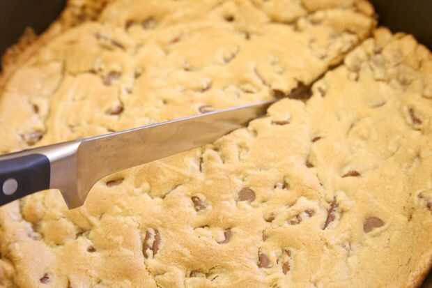 Esta parte es la más difícil. Esperando su pazookie para enfriar, para que le corte mucho más limpio. Paciencia y fuerza de voluntad me consiguieron a través de este. Deje que se enfríe durante 10-15 minutos