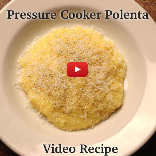Siempre he pensado que hacer polenta significado de pie sobre un cazo y removiendo constantemente una olla. No con la receta de la olla a presión. Bastante rematadamente sencilla y listo después de 5 minutos de cocción con presión. Muy bien con verduras o carnes. Agregue la mantequilla o queso y esta es una receta vegetariana, servir con queso de soja es una receta vegana.
