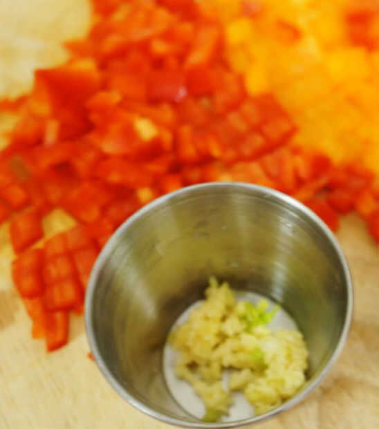 Materia prima aproximadamente 4 cucharadas picada pimiento rojo o amarillo añadir más si lo desea